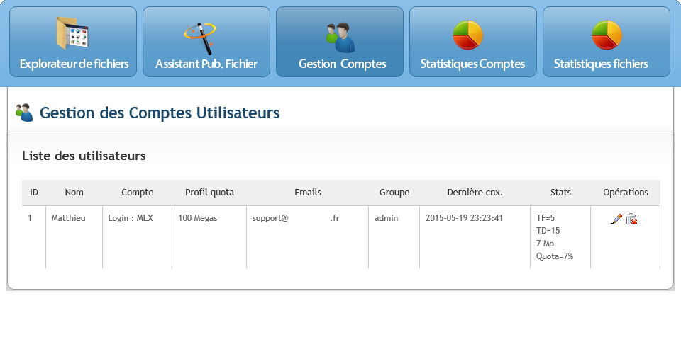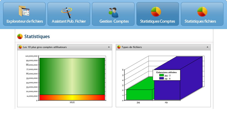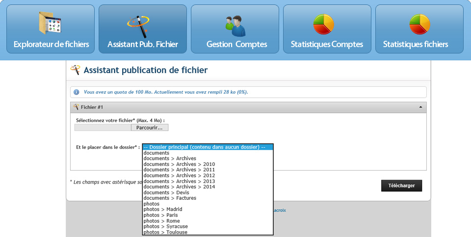 Vous pouvez ainsi envoyer des gros fichiers par email, suivre tous les téléchargements d'un fichier, gérer des profils d'utilisateurs, ...