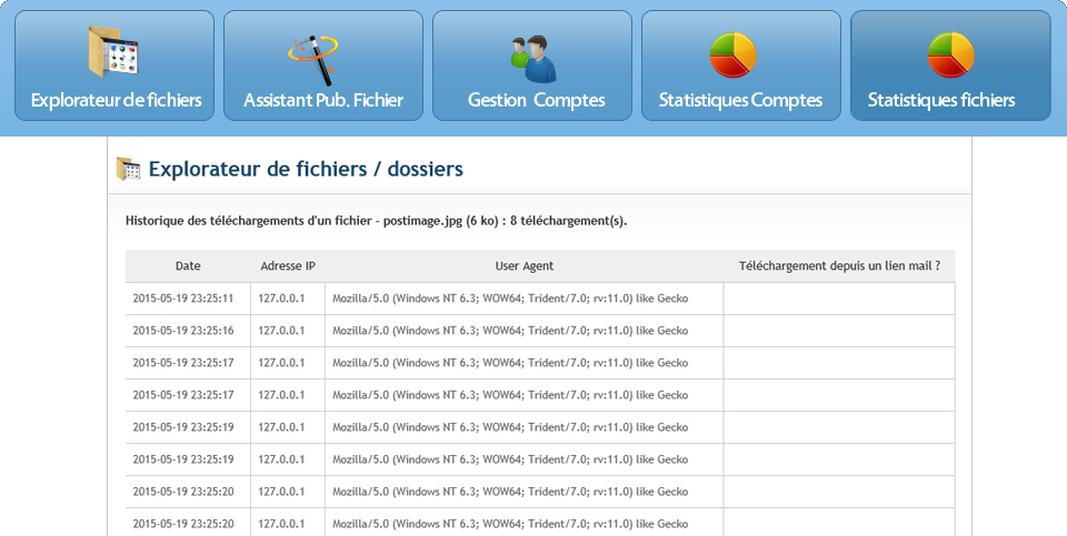 - Les statistiques vous indiquent par qui et quand vos fichiers sont téléchargés